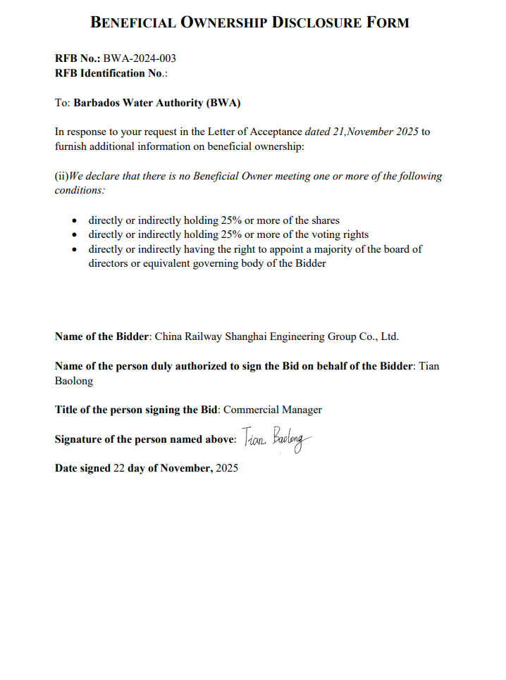 Barbados Climate Resilient South Coast Water Reclamation Project and Re-use Facilities: BWA-2024-003